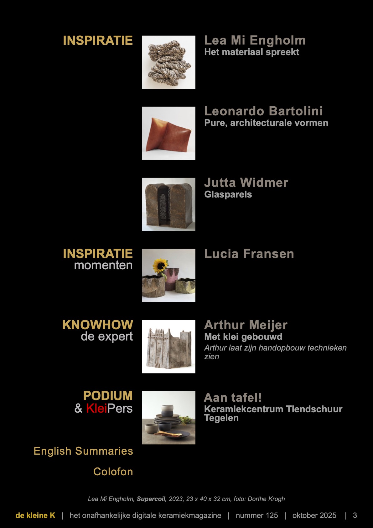 Vind inspiratie en knowhow in dit gratis digitale keramiekmagazine. Voor amateurs en professionals. Maandelijks vol interviews, stap-voor-stap artikelen, speciaal gemaakte video's en actuele evenementen. Onafhankelijk, met informatie waar u praktisch wat mee kunt.